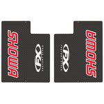 Durable upper fork shields with a clean carbon and red finish, designed to protect Showa forks from roost, rub and wear.