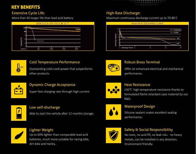 ~ Low self-discharge rate less than 5% per month, can still start vehicle after 12 months with no charging.