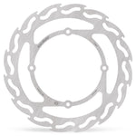 Our MX Flame Discs are manufactured to the tightest tolerances and specifications using a specially hardened premium quality stainless steel. However, we take performance to the next level by integrating our Flame design into the disc, which aids in the cooling and cleaning of the contact surface. All our FLAME discs are laser cut, CNC drilled, and precision double-grinded for perfect fitment and flatness. For best performance we recommend using Moto-Master brake pads with the matching pad compound that best suits your type of riding.