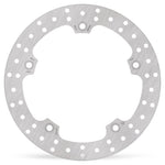 The Moto-Master HALO Series sets a new standard in aftermarket circular-round design brake rotors. Its premium quality stainless steel outer ring allows for high performance braking while at the same time extremely durable. Exact size and positioning of the venting holes ensures equal heat dispersion under high thermal stress while the brake pad contact surface is cleaned evenly. The laser cut and precision grinded outer ring is fixed to a billet CNC machined aircraft aluminum carrier which is black anodized and laser marked. Newly designed lightweight stainless steel floaters complete the package.