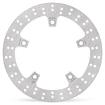 The Moto-Master HALO Series sets a new standard in aftermarket circular-round design brake rotors. Its premium quality stainless steel outer ring allows for high performance braking while at the same time extremely durable. Exact size and positioning of the venting holes ensures equal heat dispersion under high thermal stress while the brake pad contact surface is cleaned evenly. The laser cut and precision grinded outer ring is fixed to a billet CNC machined aircraft aluminum carrier which is black anodized and laser marked. Newly designed lightweight stainless steel floaters complete the package.