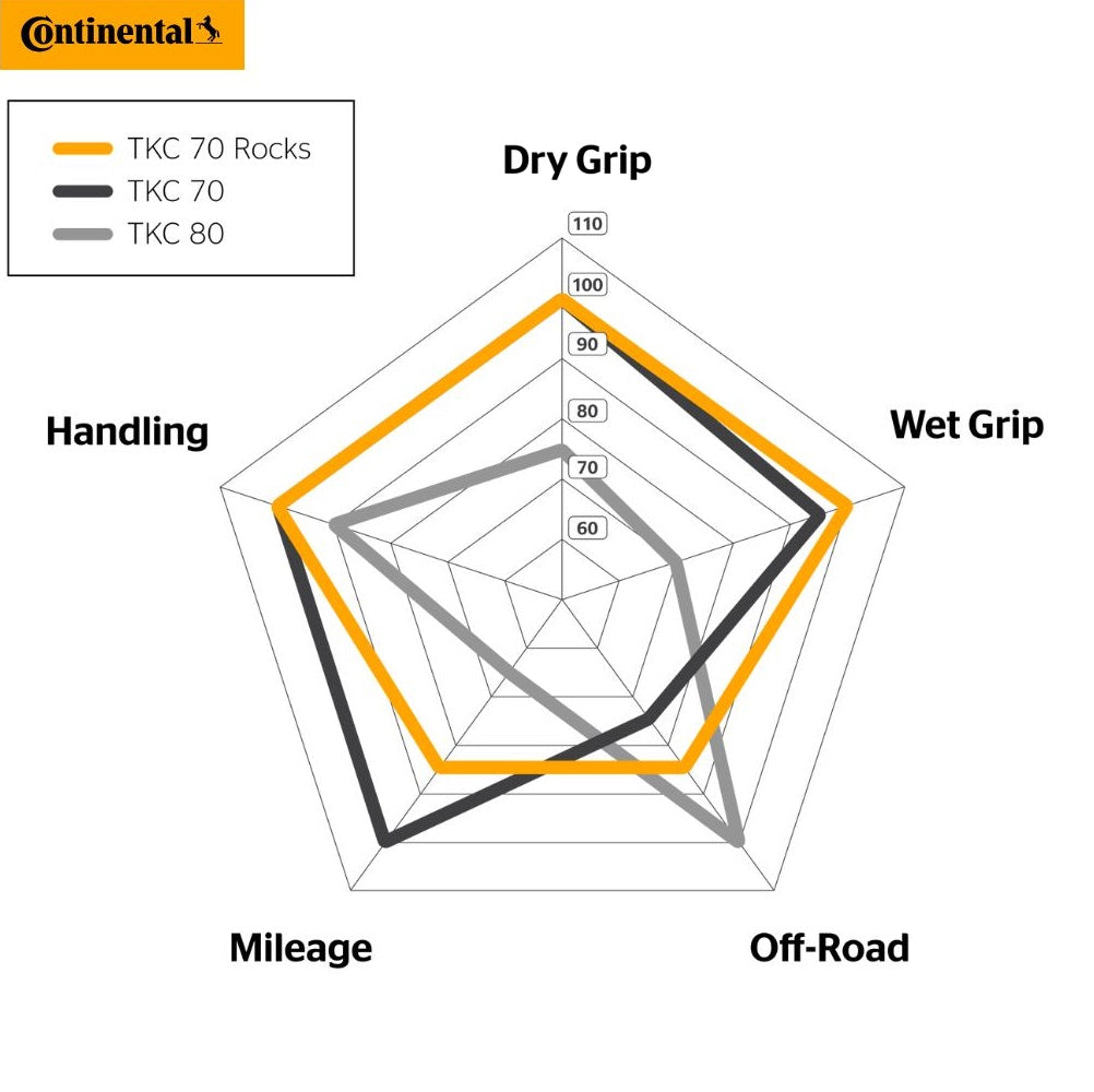 The Conti TKC80 has become the bench mark for world travel when navigation over both tarmac and unmade roads is unavoidable. The now famous "Long Way Round" trans global trip undertaken by Ewan McGregor and Charlie Boorman showed to a wider audience what seasoned biking explorers already knew, the TKC80 is peerless in its class. The very successful BMW Offroad Skills School based in South Wales employs the TKC80 and shows budding adventurers just how good the BMW can be in the right environment, on the right tyre. TKC80, don't start your adventure without them!
