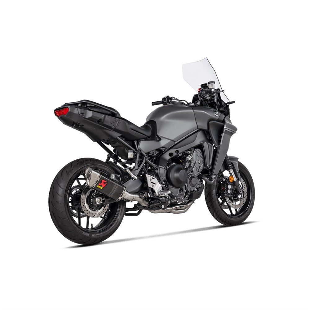 The new design features a shorter muffler for an enhanced sporty look, which exits on the side of the bike for visual impact. Power is increased by 3.3 kW (4.5 hp) at 9,600 rpm when compared in back-to-back tests on a Tracer 9 with a Racing Line (Carbon) exhaust and a standard stock exhaust system.