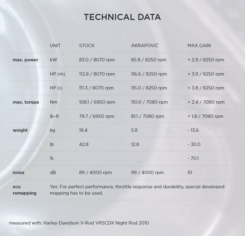 Enhance the looks, sound and performance of your Harley-Davidson V-Rod with an Akrapovič exhaust system.