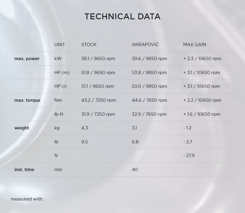 The flagship of the Akrapovič exhaust system range, used and tested by our top factory teams in motorcycle racing. It’s simply the finest exhaust system available. Each model is unique and dedicated to maximizing the engine’s performance, while reducing overall weight for optimized overall handling of the motorcycle. It is made entirely of titanium.