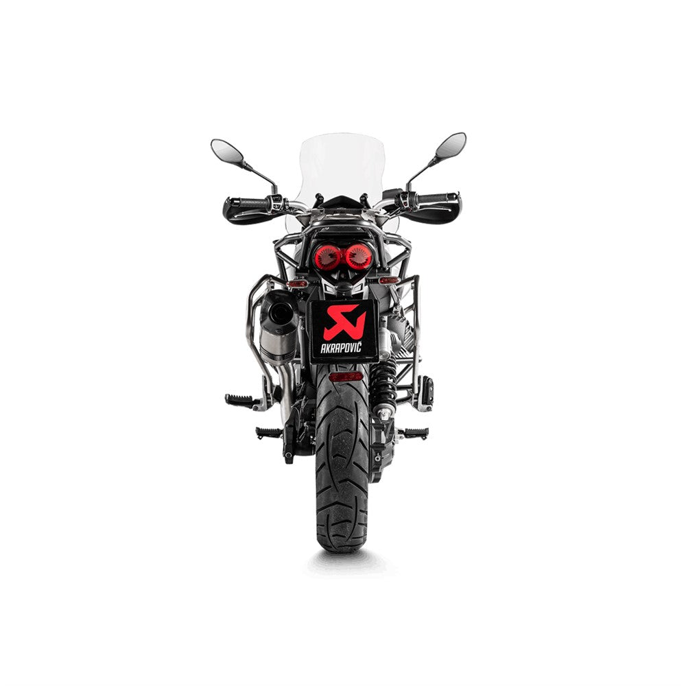 The exhaust system is compatible with Moto Guzzi Urban cases.