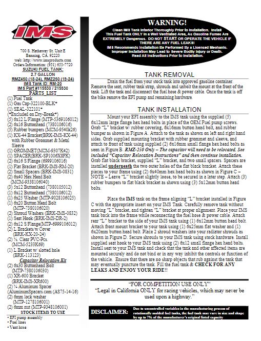 Designed to enhance the appearance of your motorcycle, yet provide greater riding distance per tankful. Larger capacity than stock, yet very slim and sleek. Perfect for the cross country or the race track! These tanks are made with POLYETHYLENE CROSSLINK for extra strength and durability.
