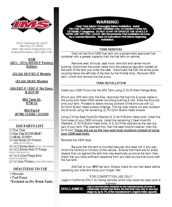 Designed to enhance the appearance of your motorcycle, yet provide greater riding distance per tankful. Larger capacity than stock, yet very slim and sleek. Perfect for the cross country or the race track! These tanks are made with POLYETHYLENE CROSSLINK for extra strength and durability.
