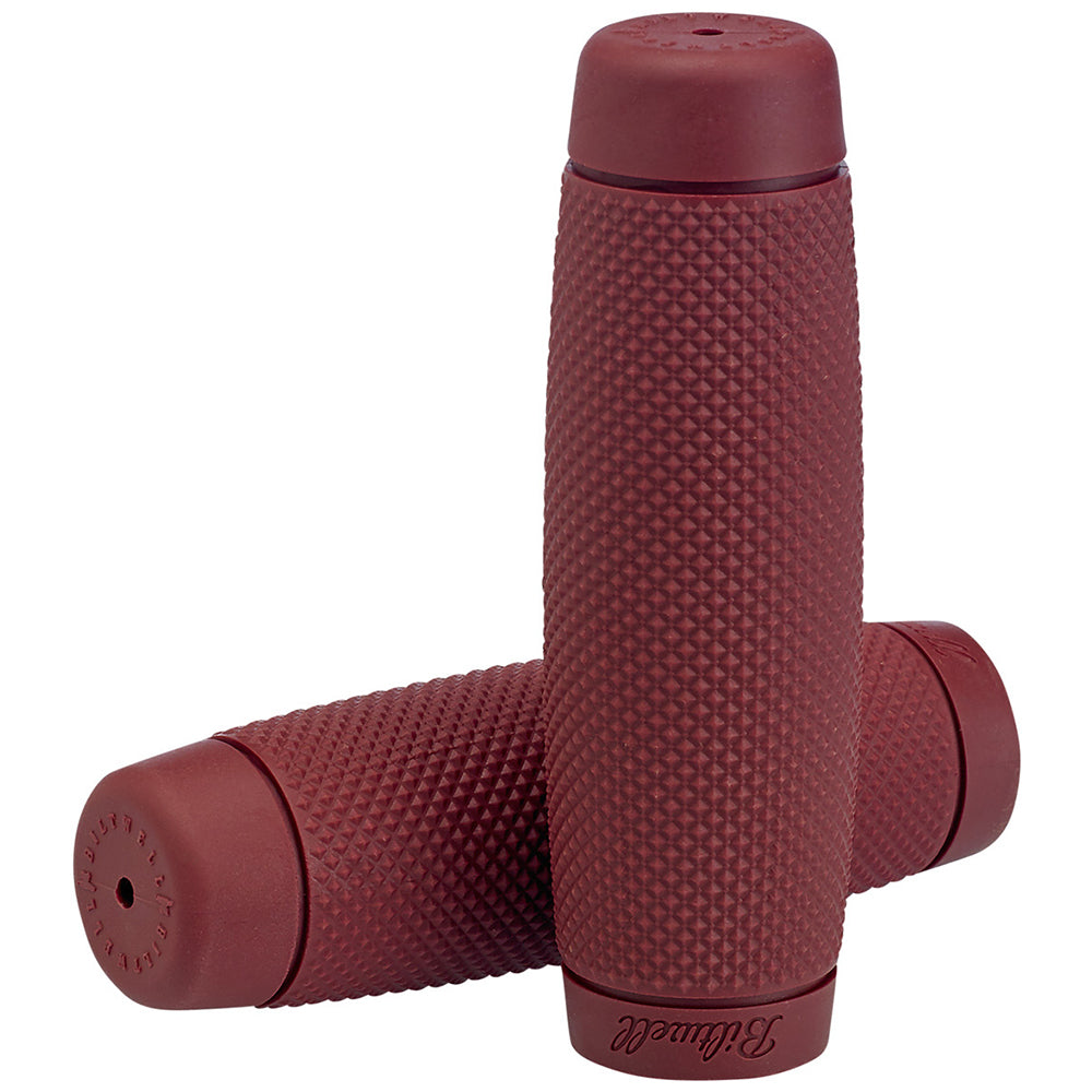Football-shaped cross section is fat in the middle and smaller on both ends to follow the contours of your open fist. Super durable and great looking, Recoil is our classic chopper grip