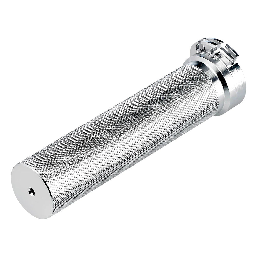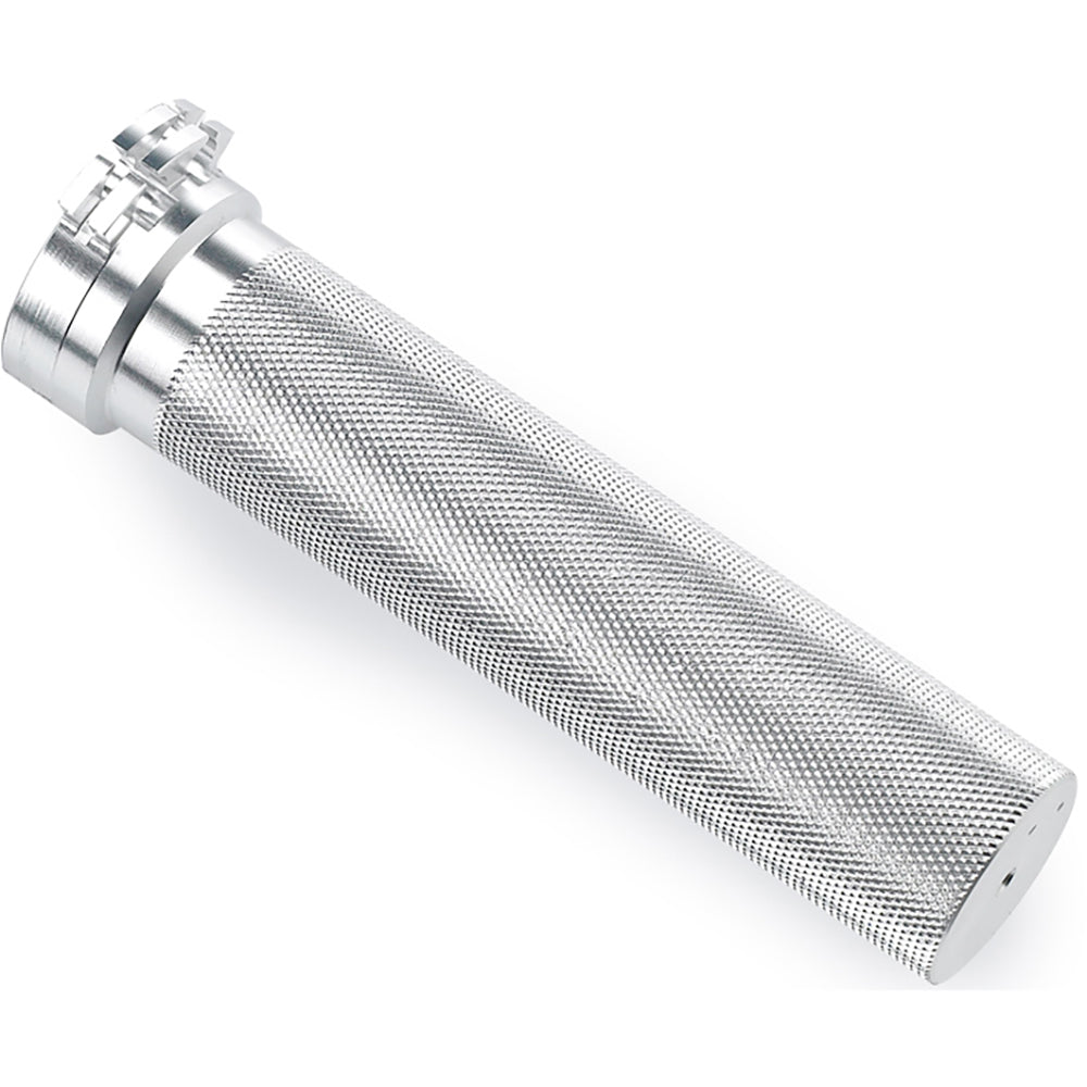 Stock Harley grips are molded to a flexible plastic tube inside the hand control, and don't provide the precision feel befitting a custom motorcycle. Our CNC-machined aluminum throttle tube replaces the stock unit to improve performance and make grip installation easy.