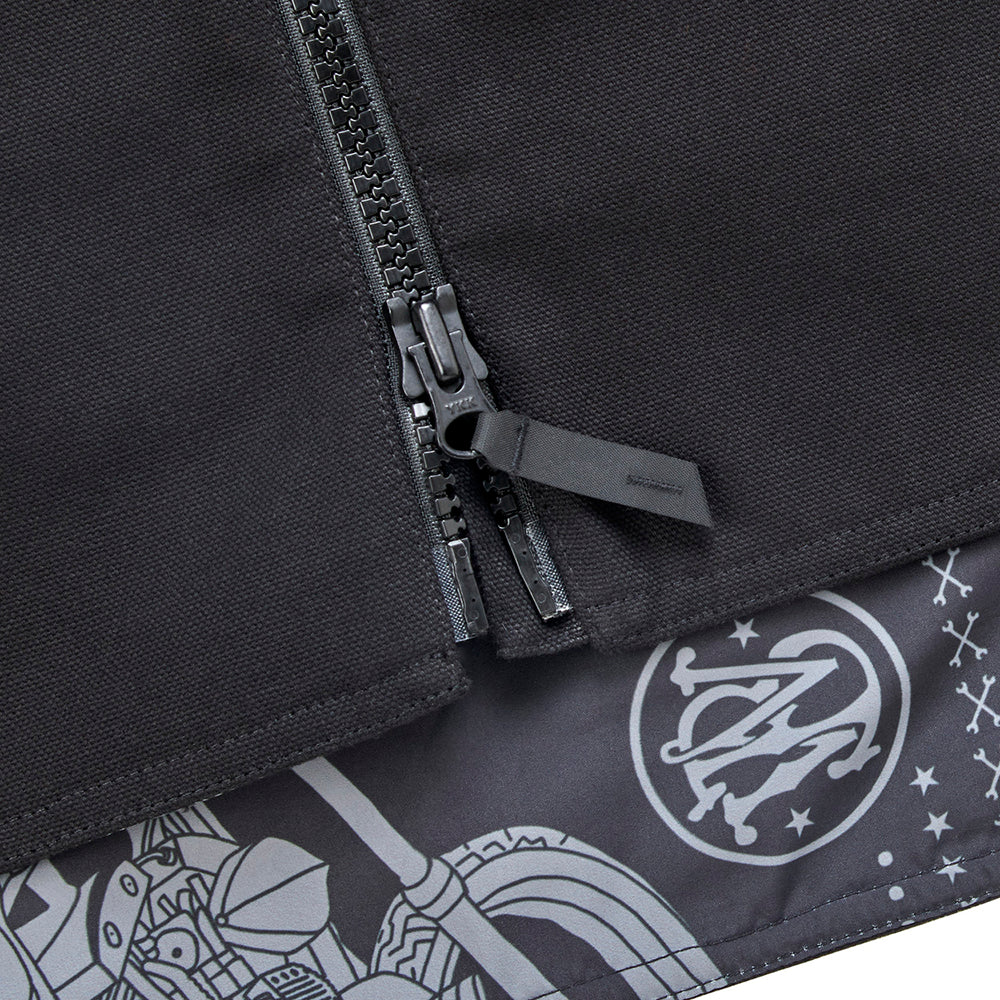 - Heavy-duty Vislon two-way weatherproof zipper with high-traction Hypalon pulls