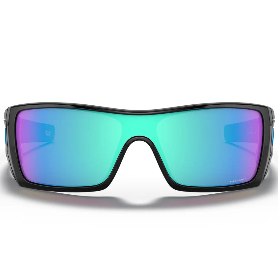 The Batwolf Oakley sunglasses feature a single continuous lens sweeps across a comfortably lightweight O Matter frame, and two interchangeable icons are included to change your look in seconds.