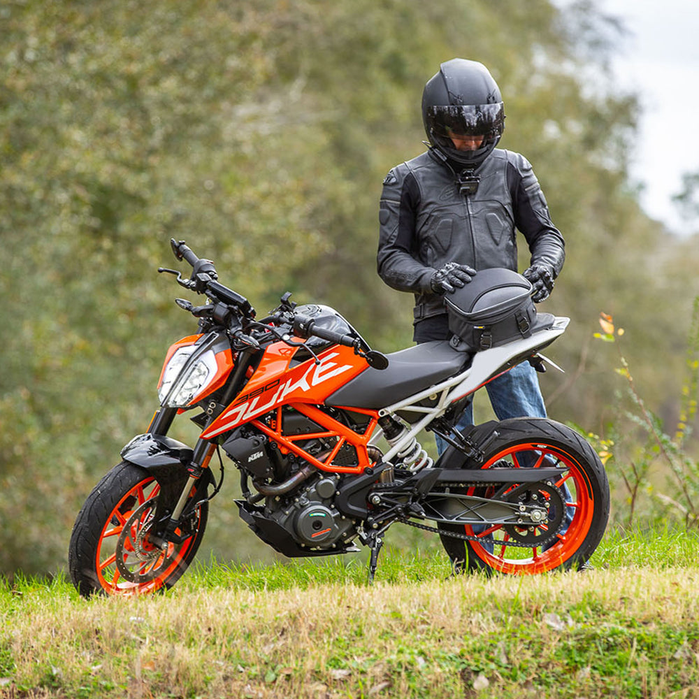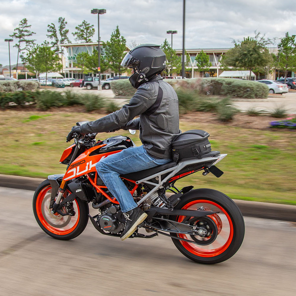Commuter Lite which is designed specifically for smaller Sport bikes or when you need to bring just the essentials. Includes a quick release mounting system which can also just attach around the seat for a clean look, EVA molded lid with carbon-like accents, internal self-fastening straps to better secure your contents and they are all made using their exclusive UltraMax® material for the highest level of UV protection. Other features still include a flush mount reflective carry handle, mesh pocket under the lid, easy slide lockable zippers, anti-slip base material, a waterproof rain cover and a lifetime warranty.