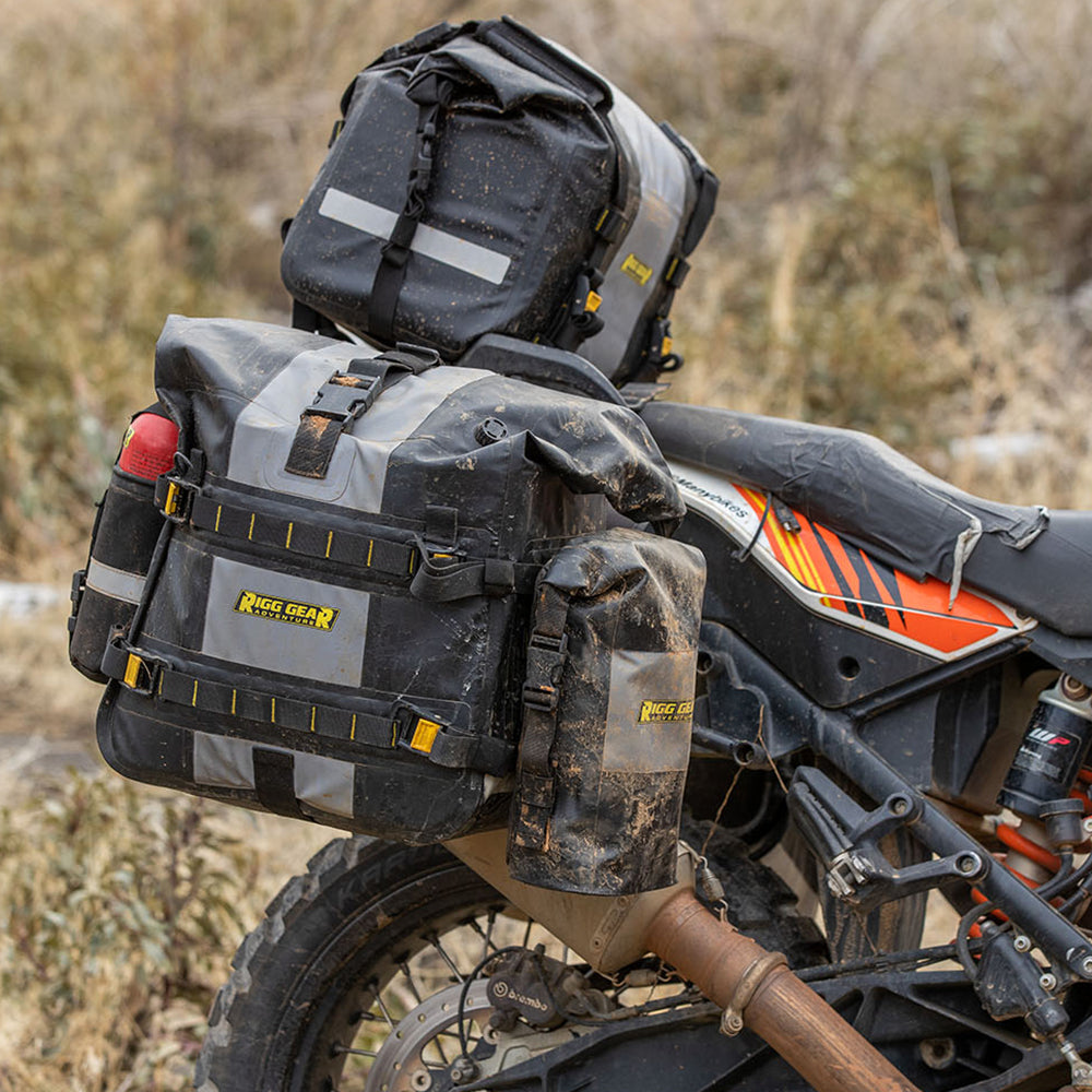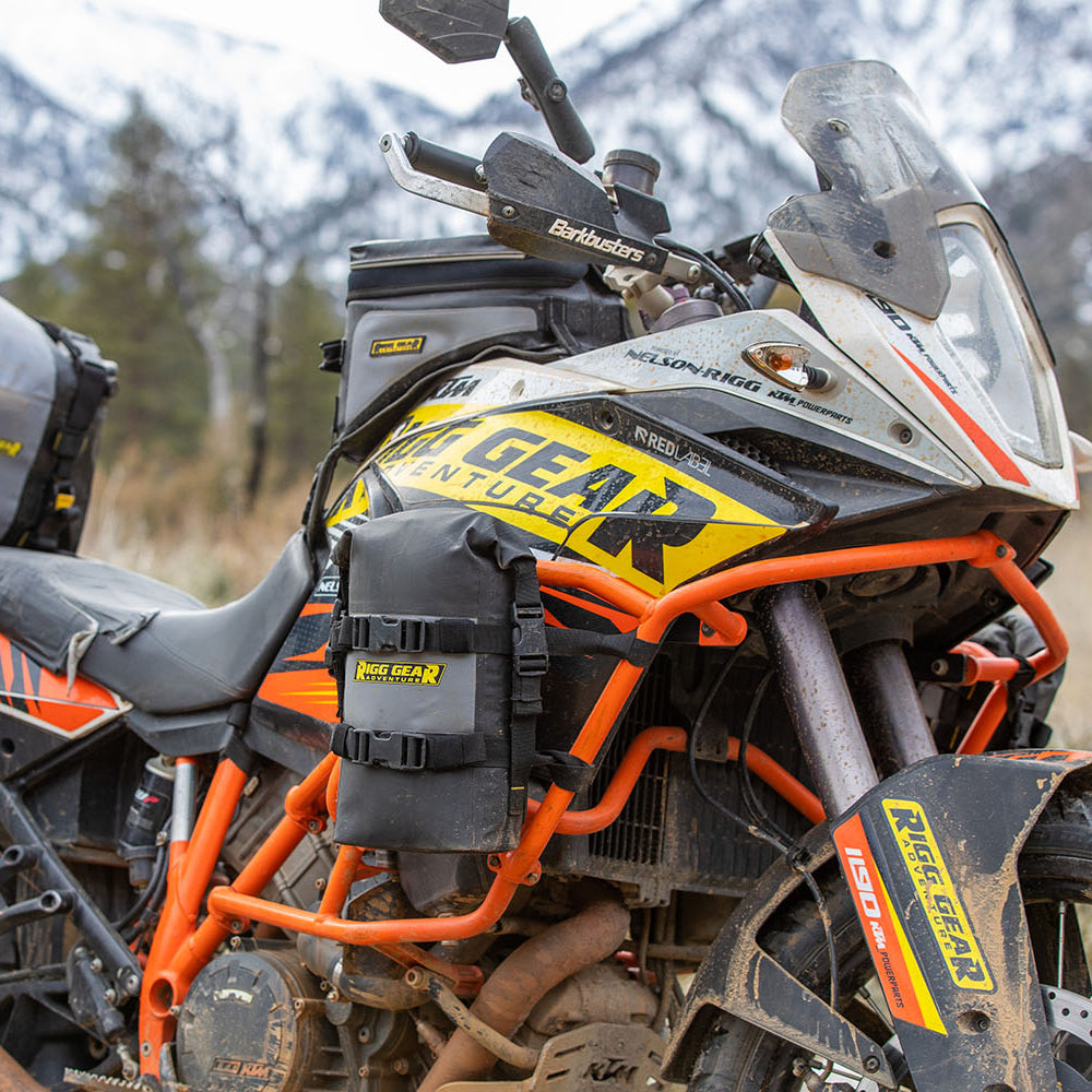 The Nelson Rigg Hurricane RiggPak Crash Bar / Tail Bag is constructed from heavy-duty UV-treated PVC tarpaulin material with electronically heat-welded seams, ensuring 100% waterproof protection. The waterproof roll closure with quick-release buckles adds an extra layer of security, while the integrated MOLLE system offers additional attachment points for accessories. With a capacity of approximately 5 liters, this bag is perfect for carrying essentials. It features universal mounting options using hook & loop straps or adjustable quick-release buckles. Backed by a lifetime warranty, this crash bar/tail bag is built to withstand the toughest conditions.