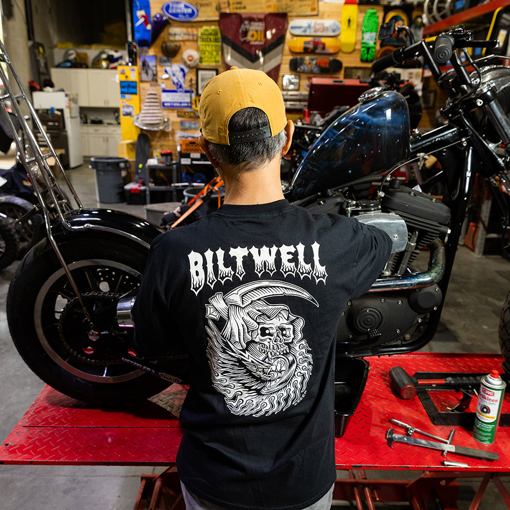 Drawn up by our bud Jake “Creep” Crawley @crawlincreep this shirt has crispy, high-contrast graphics that are printed right here in Temecula, CA USA. 100% pre-shrunk 6oz cotton tee is detailed with hand-screened water-based inks, woven clip tags and the irritating collar tag has been replaced by a screen-printed label.