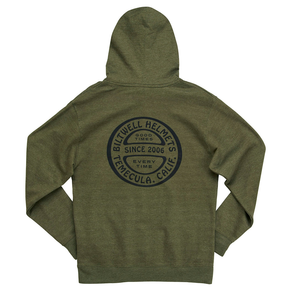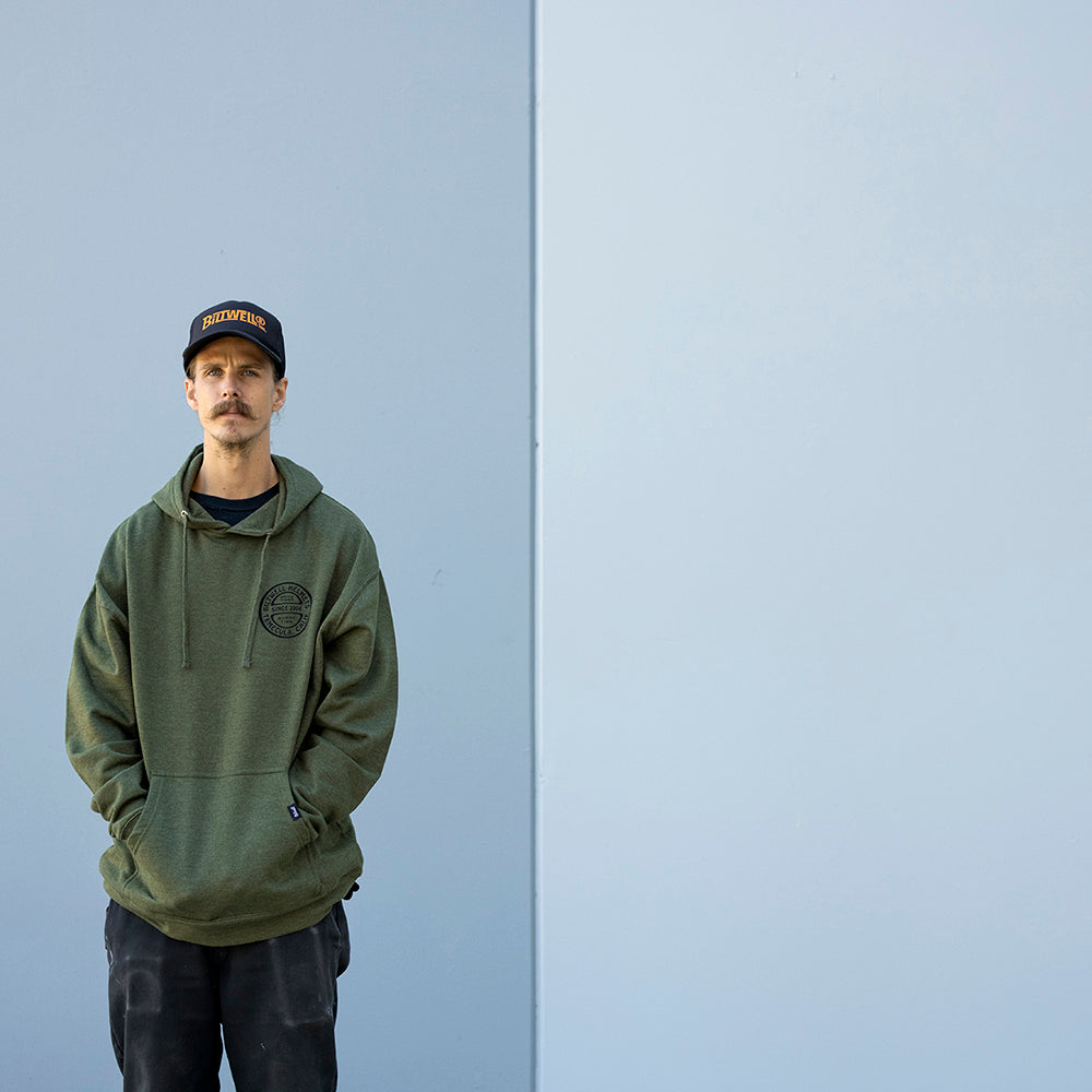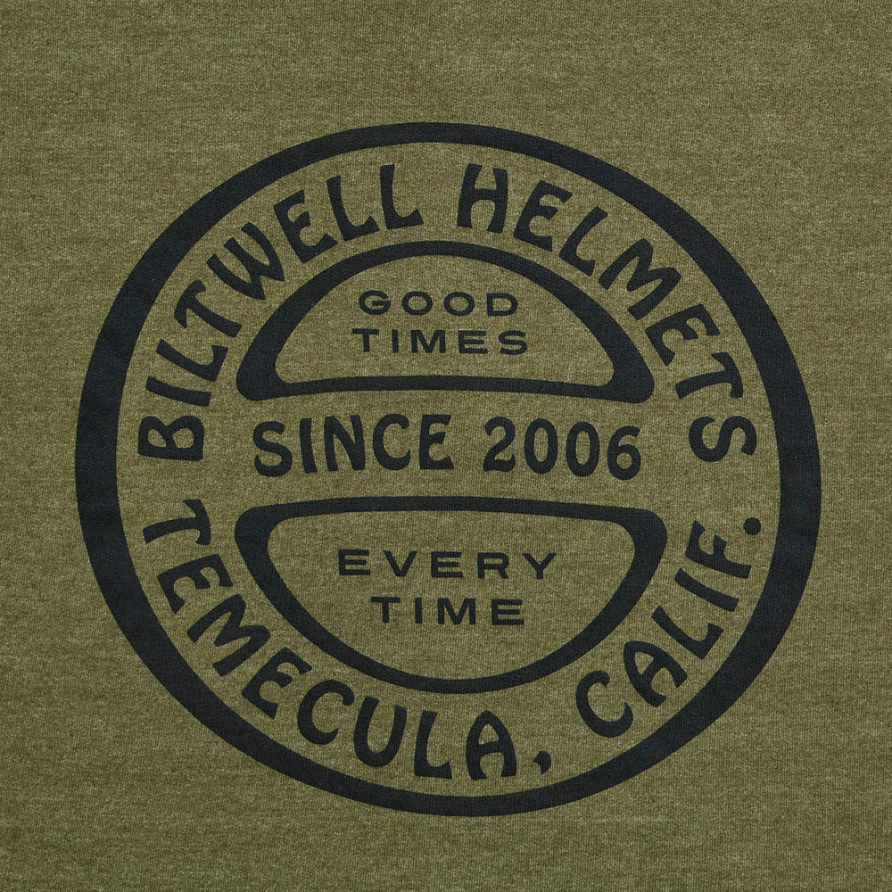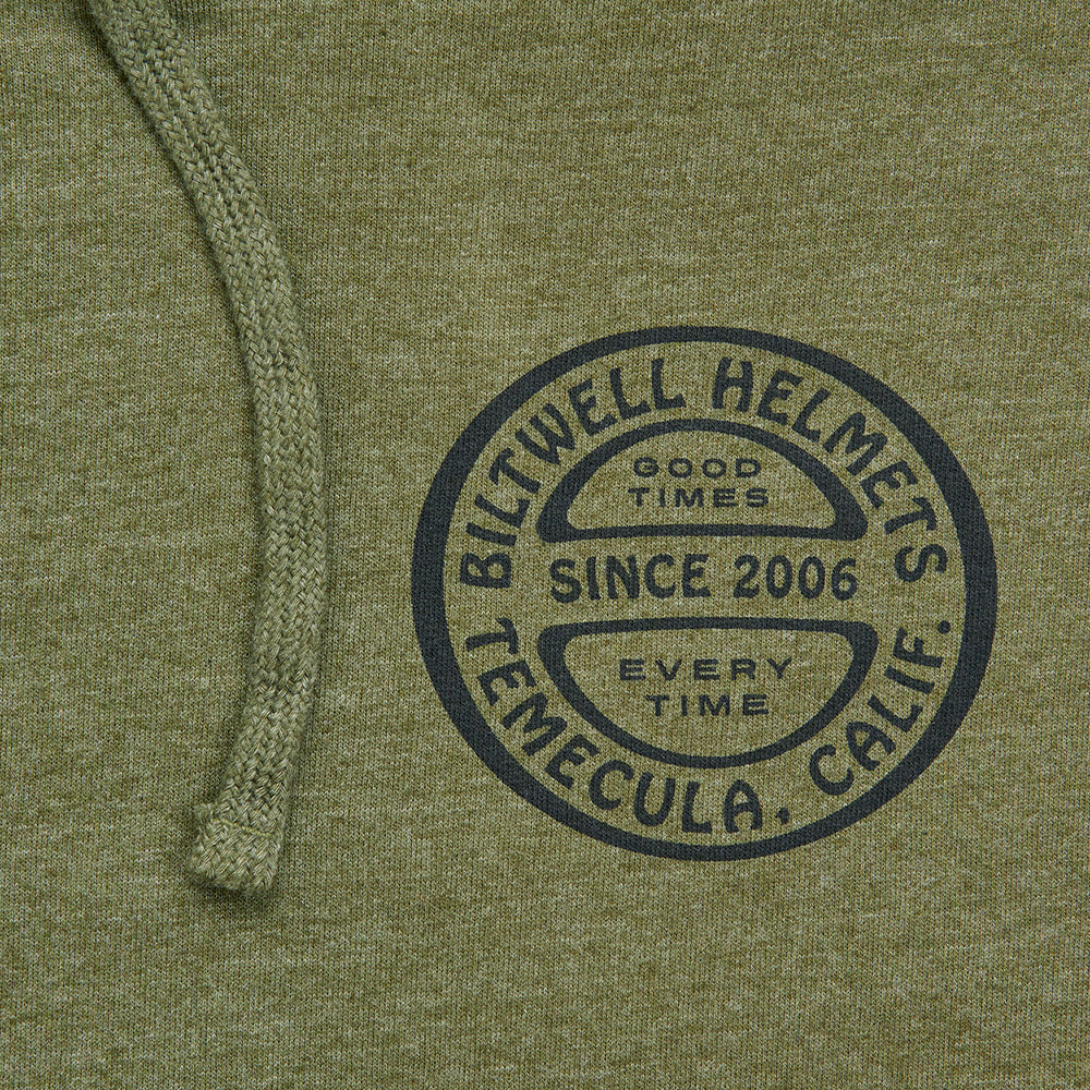 We’re getting bored with black t-shirts and hoodies and thought this heather olive-drab was a great color.