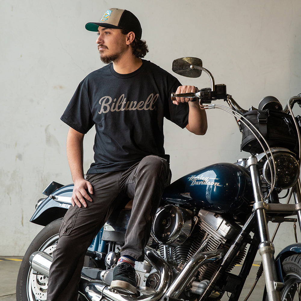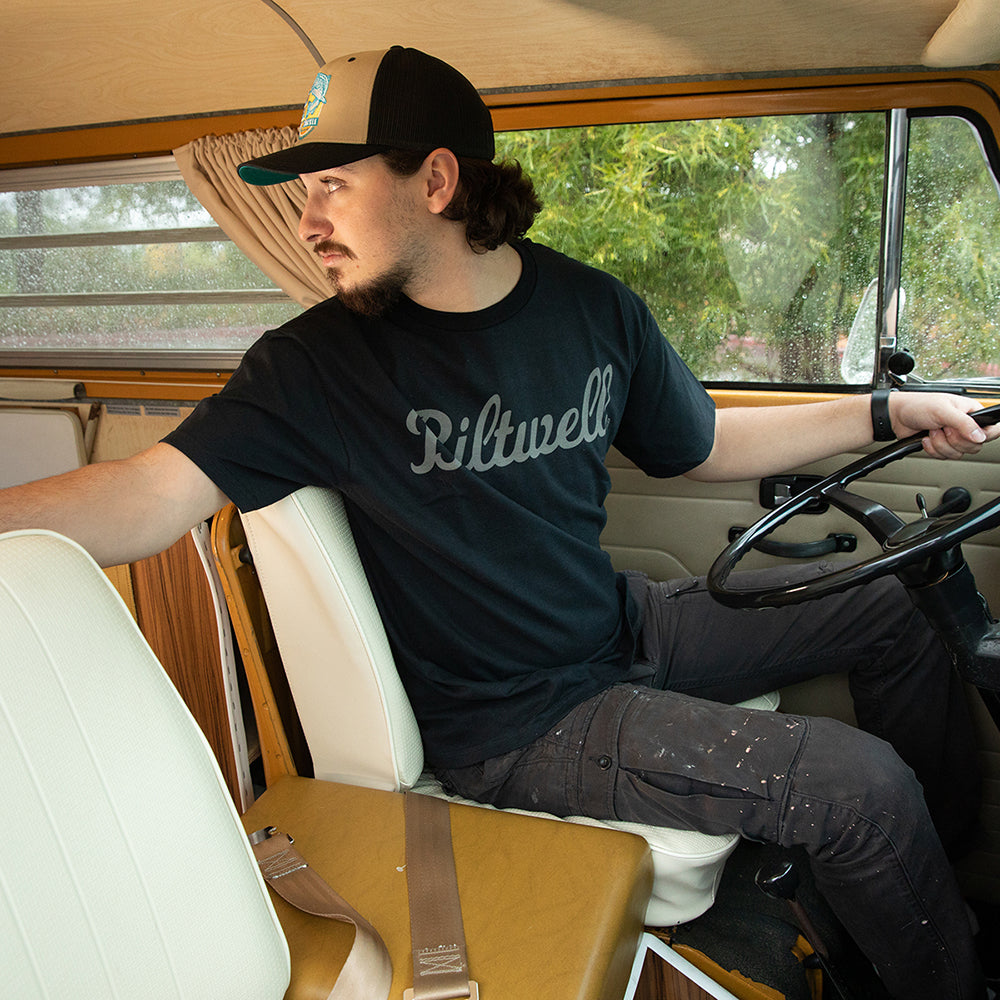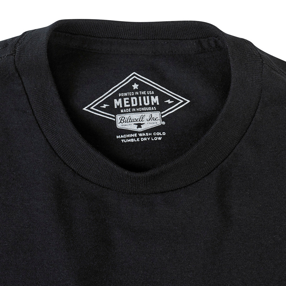 100% pre-shrunk 6oz cotton tee is detailed with hand-screened water-based inks, woven clip tags and the irritating collar tag has been replaced by a screen-printed label.