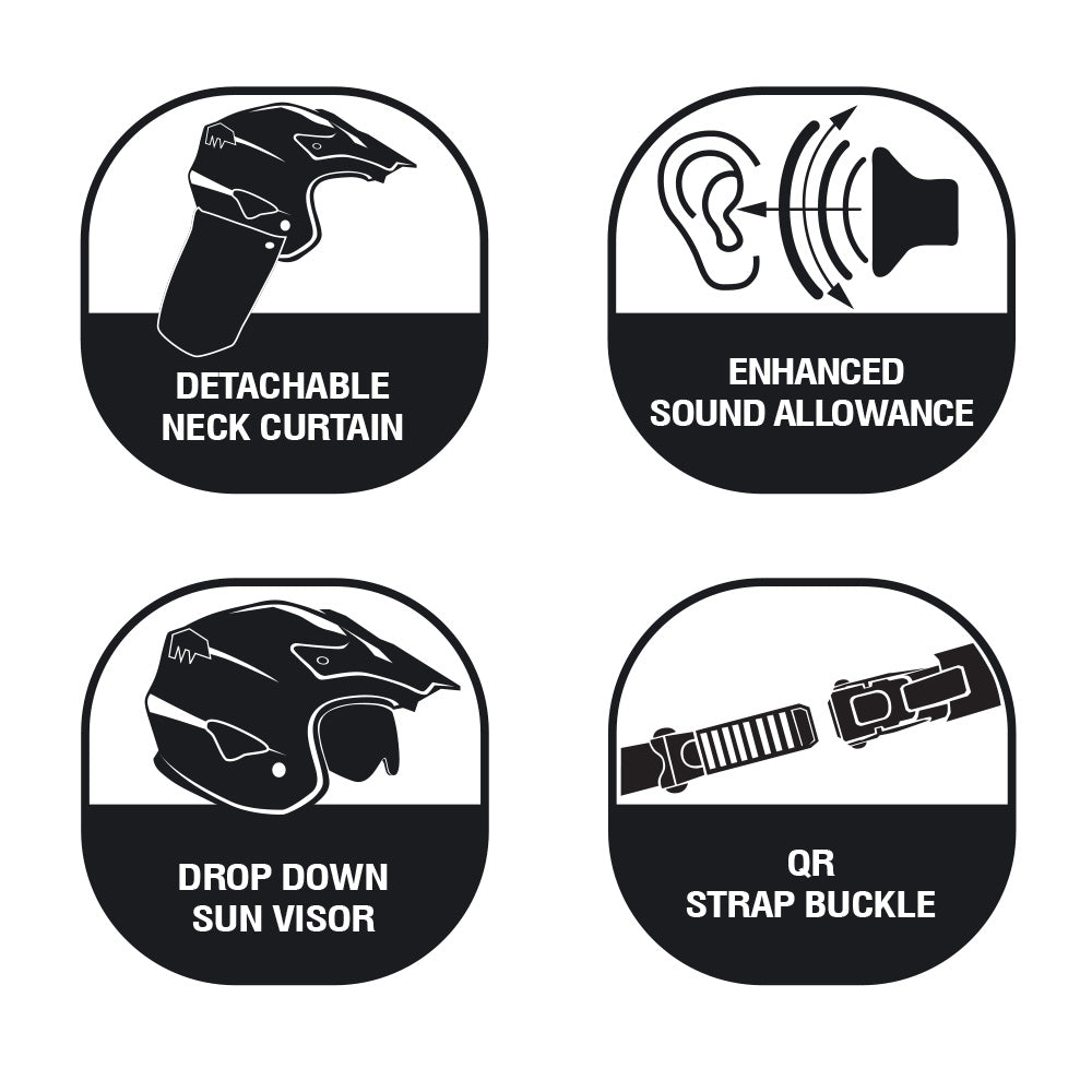 A lightweight, well-ventilated ag-helmet with lots of features such as quick release chin strap, removable neck protection, and internal sun visor, to aid comfort and useability on the farm.