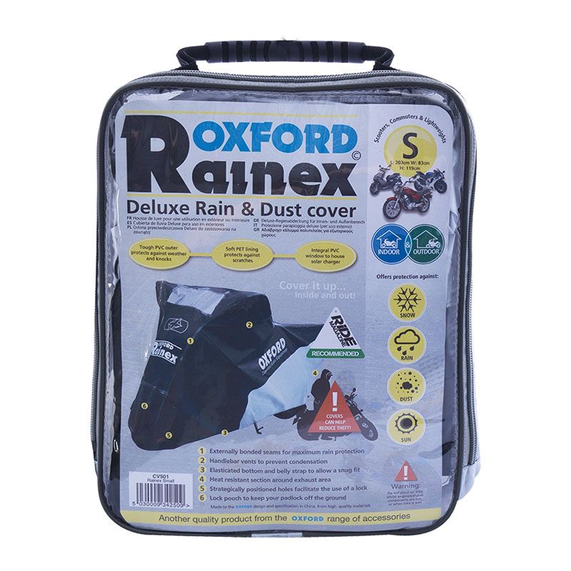 The Oxford Rainex is a deluxe rain and dust cover. Designed for outdoor use it will protect against rain, sun, snow and dust.