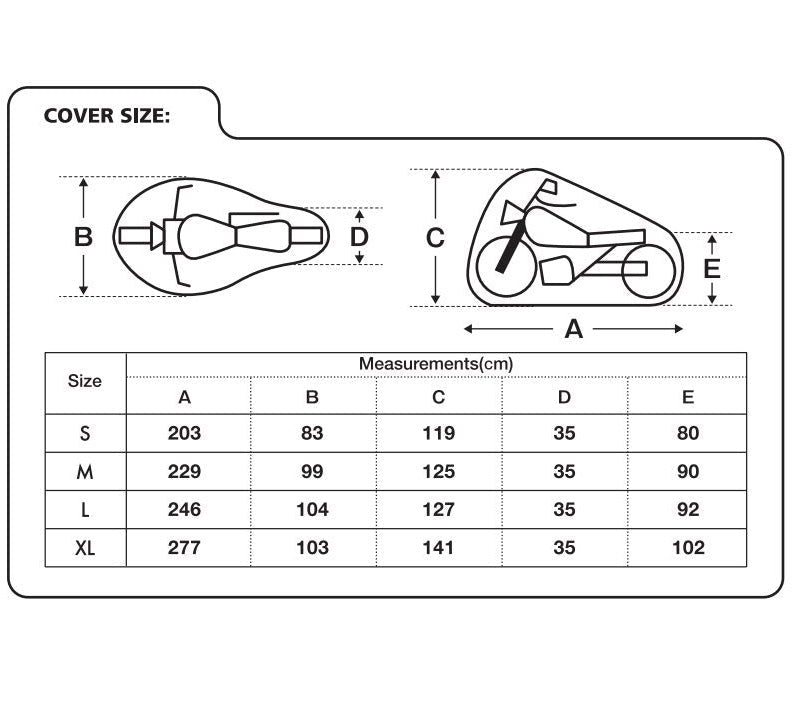 Local police initiatives have shown that bike covers can be a useful anti-theft device - if a thief can't see what kind of motorcycle is underneath they are less likely to target it. Combine with a Oxford chain or disc locks with built-in alarm, to add an additional layer of defence against any would-be bike thief.