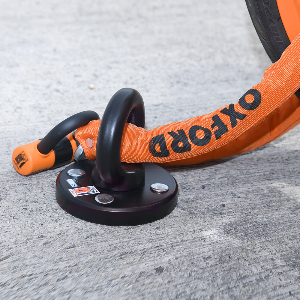 This Ground Anchor has been constructed using a 26mm diameter case hardened steel head which resists all forms of attack including saw, sledgehammer and bolt croppers (1.5 tonne). The Head has a 59mm internal diameter allowing all chains to be fitted. The Rotaforce has been independently and rigorously tested and obtained Sold Secure Motorcycle Gold and SBSC Certified product.