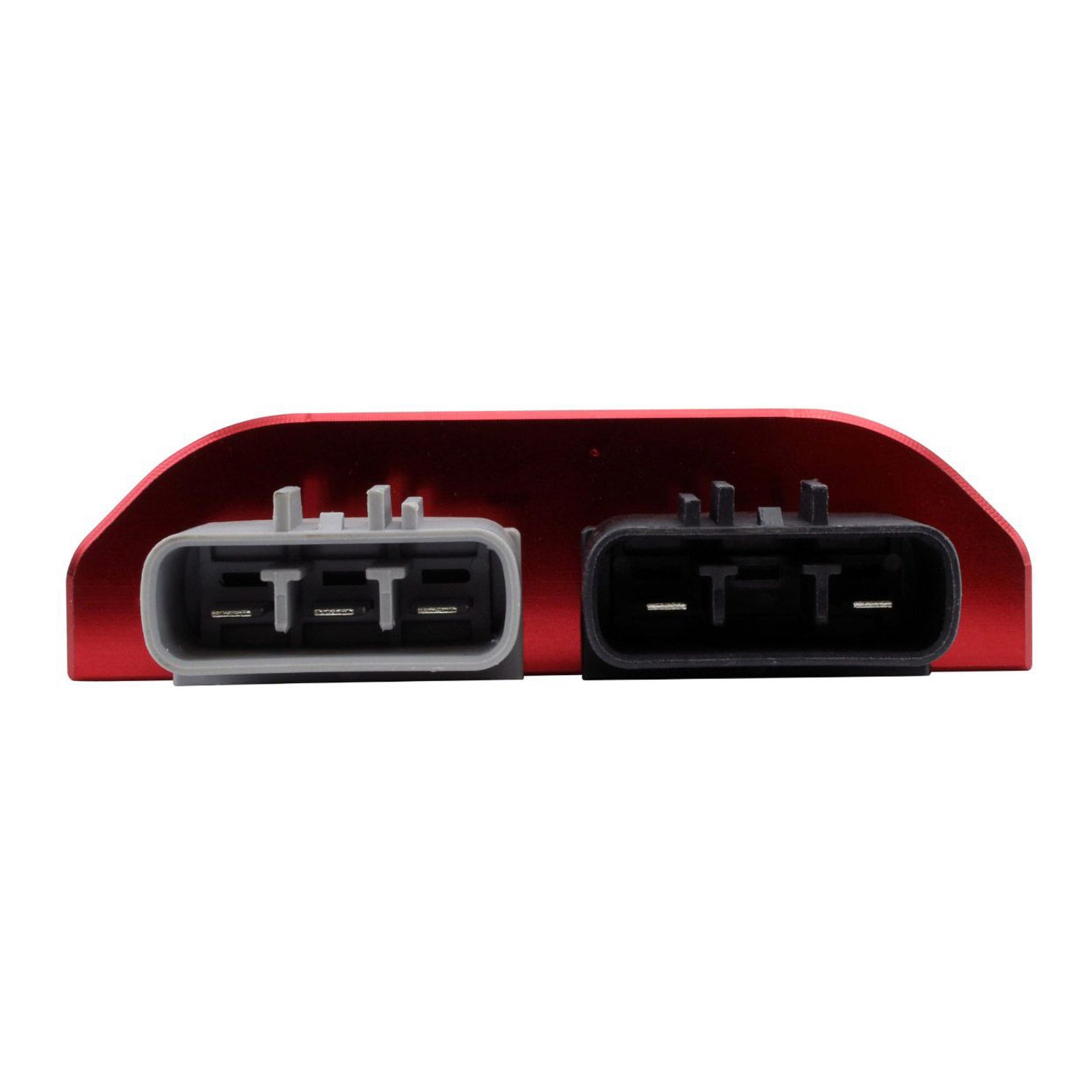 Our new red machined aluminum Mosfet voltage regulator is a great upgrade for heat dissipation in any Powersports charging system. After 10 minutes of use, our billet aluminum heatsink runs cooler by 33% than standard cast regulator housings. Our new red regulator, equipped with the renowned Mosfet regulation technology, is an added value to any three-phase permanent magnet charging system.