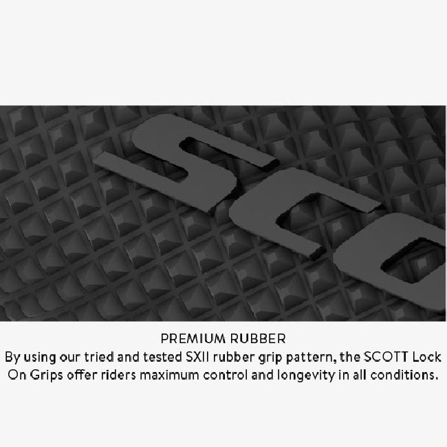 The SCOTT Grip SX II is a dual density grip with a soft density diamond pattern surrounding a firm density core and end cap. The raised diamond texture offers incredible grip while the soft compound helps reduce arm and hand fatigue. No grip glue or wire is required to mount the grips and any form of grip slippage is completely eliminated. With our tried and trusted SXII diamond rubber pattern combined with vibration reducing construction, the SXII Lock On grips will provide a premium riding experience for any level of rider.