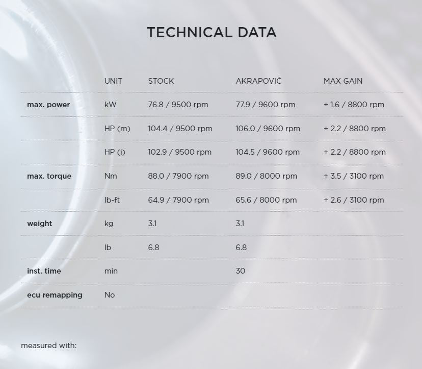 Installation of the optional link pipe (SS) makes EC/ECE type approval of the Slip-On Line (Titanium) invalid.