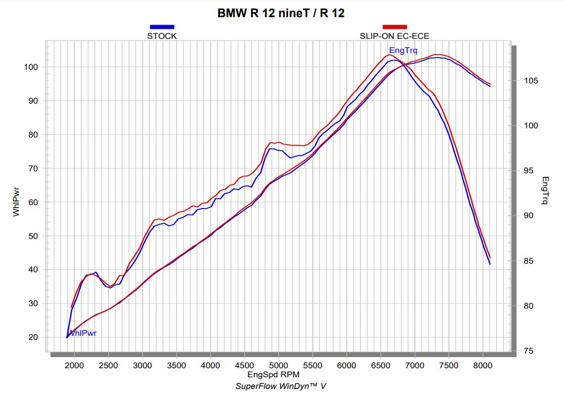 With its neo-retro styling, this exhaust features black-coated double conical mufflers constructed from high-grade stainless steel with a lightweight titanium link pipe. The design and lines of the exhaust have been specially developed to integrate with the bike, and the system is finished with a sandblasted stainless-steel heatshield to protect the rider’s equipment and a laser engraved Akrapovič logo on the muffler for a classy and refined look. During the development phase, the engineers focused on throttle response and rideability, with performance enhanced by a 0.9 kW (1.2 hp) increase in power and a torque gain of 1.6 Nm, both at 6,200 rpm, when compared to a BMW R 12 nineT equipped with a standard stock system and tested on the in-house dyno. Weight is reduced by 10.6% over the stock exhaust, and the Slip-On Line (SS) delivers a deep and sporty sound, which meets type approval for an EC/ECE certificate. This exhaust is a plug-and-play installation that requires no remapping. The exhaust system also fits on the BMW R 12 standard version.