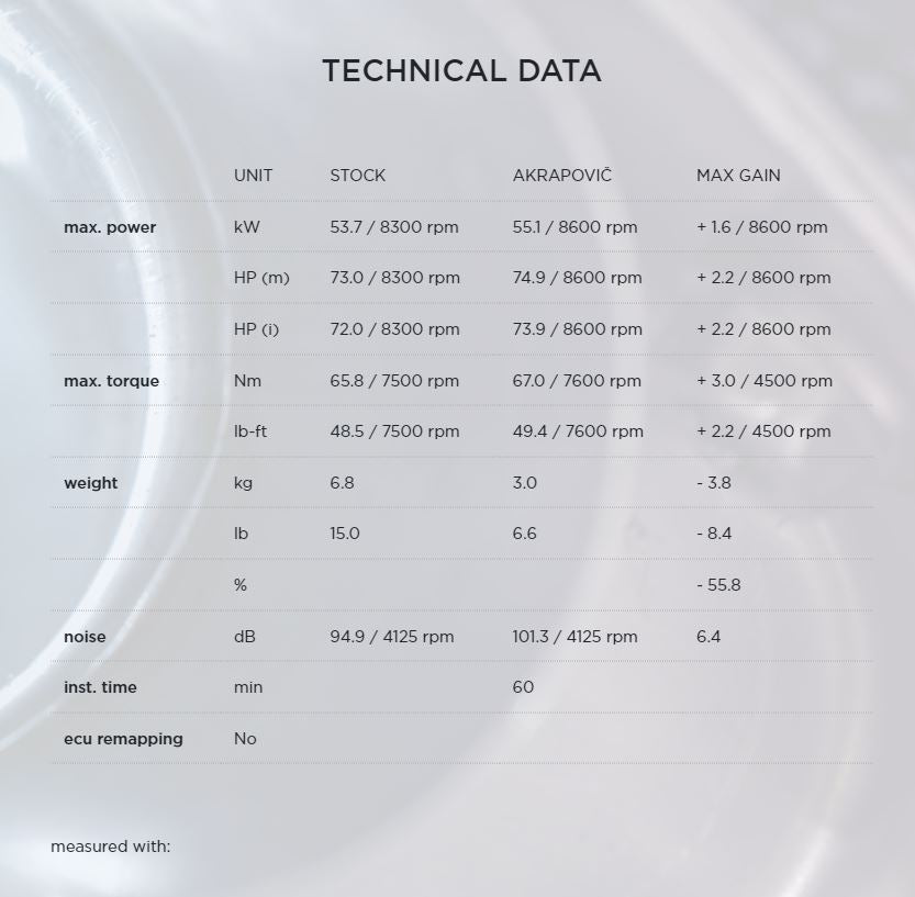 Featuring a completely new design, this system has a double conical muffler and link pipe that perfectly integrate with the bike’s style. Constructed from high-grade stainless steel with black-coated mufflers, the exhaust is finished with a laser-engraved Akrapovič logo. Weighing just 3.8 kg, 55.8% lighter than the standard stock system, it has been developed for use on closed-course competition circuits only.