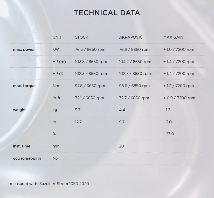 Exhaust system is compatible with Suzuki side cases and central stand.