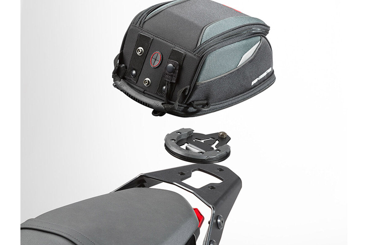 Whether on the streets or off-road: with the EVO tank ring for the ALU-RACK, EVO tank bags can be quickly and securely attached to the tail. The EVO tank ring is attached using four screws and makes it possible to snap on flat-bottomed EVO tank bags.
