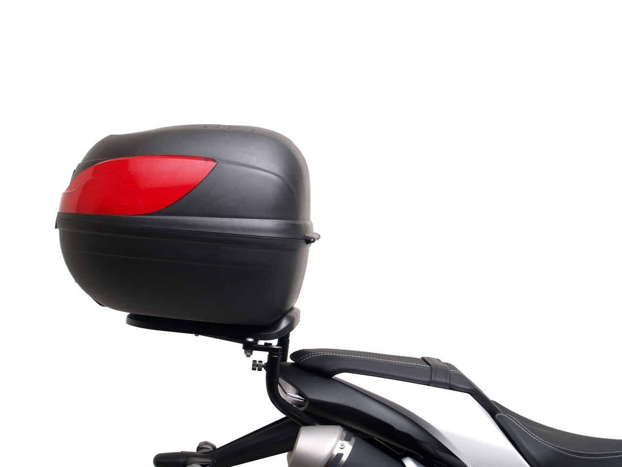 The mounting plate that is supplied with the top box fits to this carrier. Four M6 Allen head bolts, spring washers and flat washers are supplied to secure the mounting plate to the Top Box Rack. A separate fitting kit is supplied with the Top Box for universal fitting to other racks.