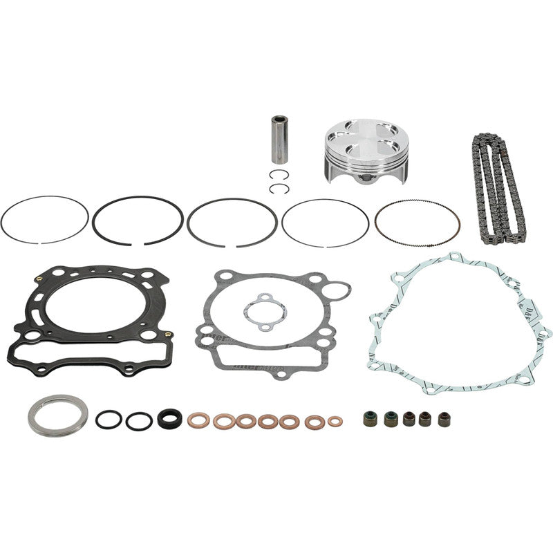 Easing the repair process by saving time and money Vertex Pistons Top-End Piston Kits come with everything needed to replace your piston, top-end gaskets, and wrist pin bearing (for two-strokes) when the time comes. Included are the piston, rings, wrist pin, circlips, top end gaskets, and even wrist pin bearing (for two-stroke applications). Four-stroke kits include a free Camchain!