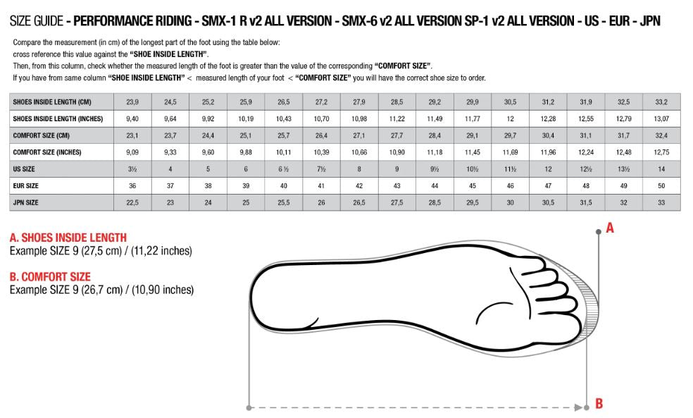 ~ Ergonomic last for forefoot streamlining to enable greater control of the bike's controls and for superior, wide-ranging foot profile, fit and comfort.