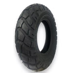 Michelin Reggae Tyres are simple knobby tread pattern design. The pattern was designed to mimic an all-terrain style tyre that works in almost any condition. The multi-purpose tread design flows along the edges to provide that all-terrain grip through the entire tyre. Don't be fooled, although, a 10" tyre, these utilize Michelins high-end R&D that goes into all their high-end tyres. This makes it perfect for a scooter like the Honda Ruckus and other small cc engines that can fit large tyres.