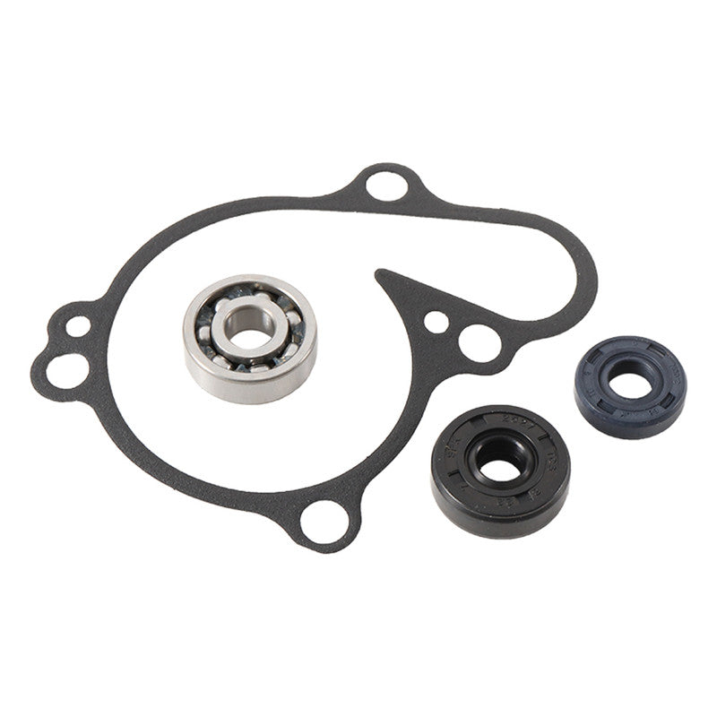 Hot Rods water pump repair kit includes water pump cover gasket or o-ring, water pump shaft bearing(s) and seal(s) to repair a leaking water pump seal or a failed bearing. Precision micro bearings provide OE quality and durability. High pressure/temperature mechanical and rubber seals. Contact Motozone if you cant find a kit for your motorcycle.
