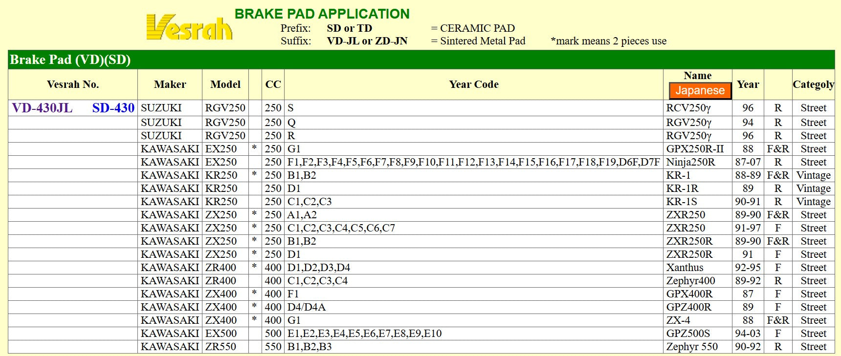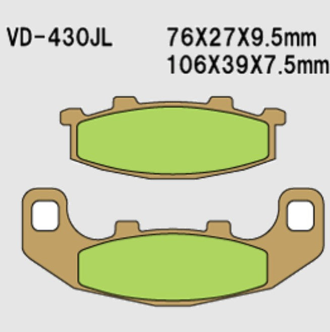 Built for riders who push their limits, the Vesrah VD430JL Sintered Metal Disc Pads deliver serious braking power, fade resistance, and long pad life — even under high heat and hard use.