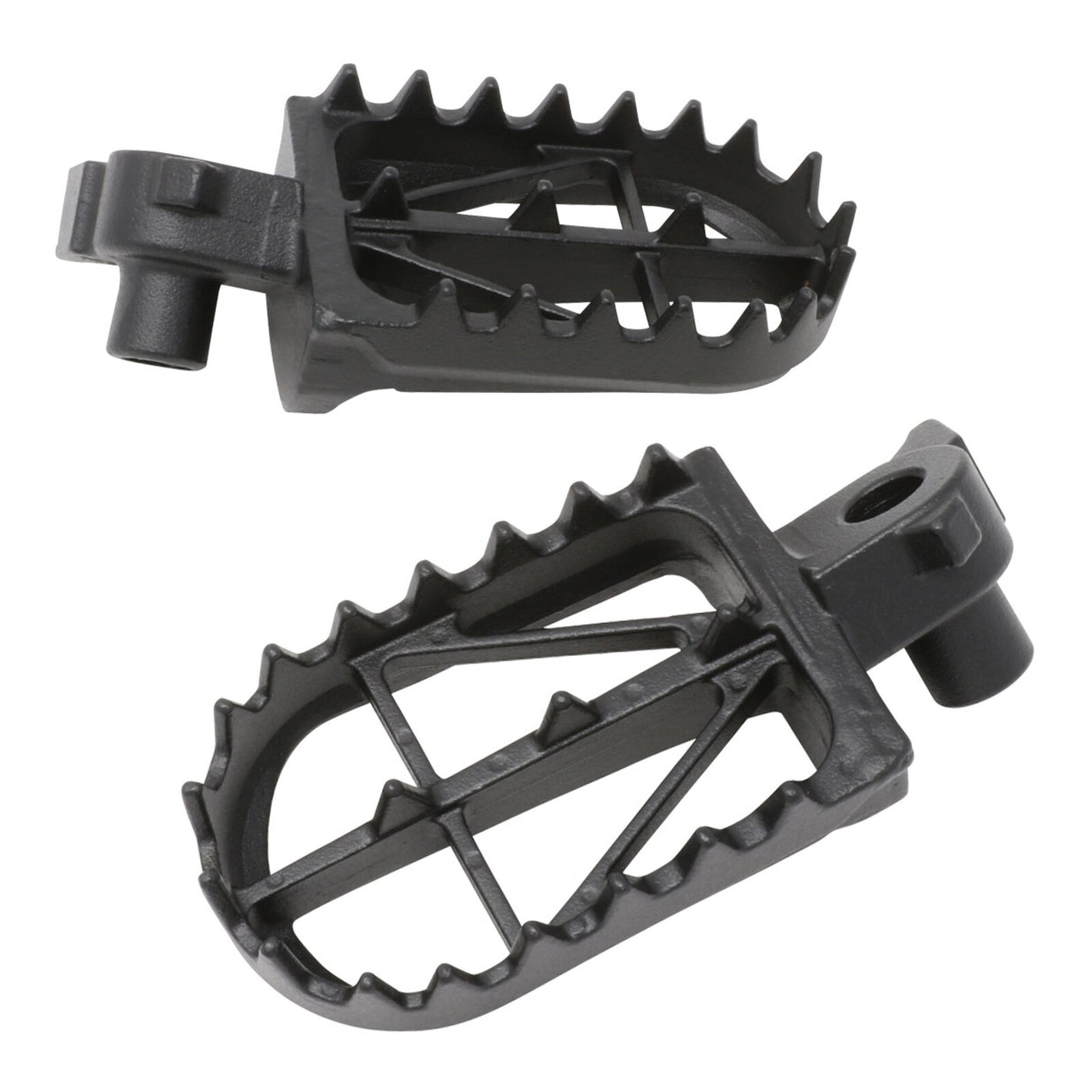 Durable steel wide foot pegs. Made of chromium molybdenum steel for extreme durability.