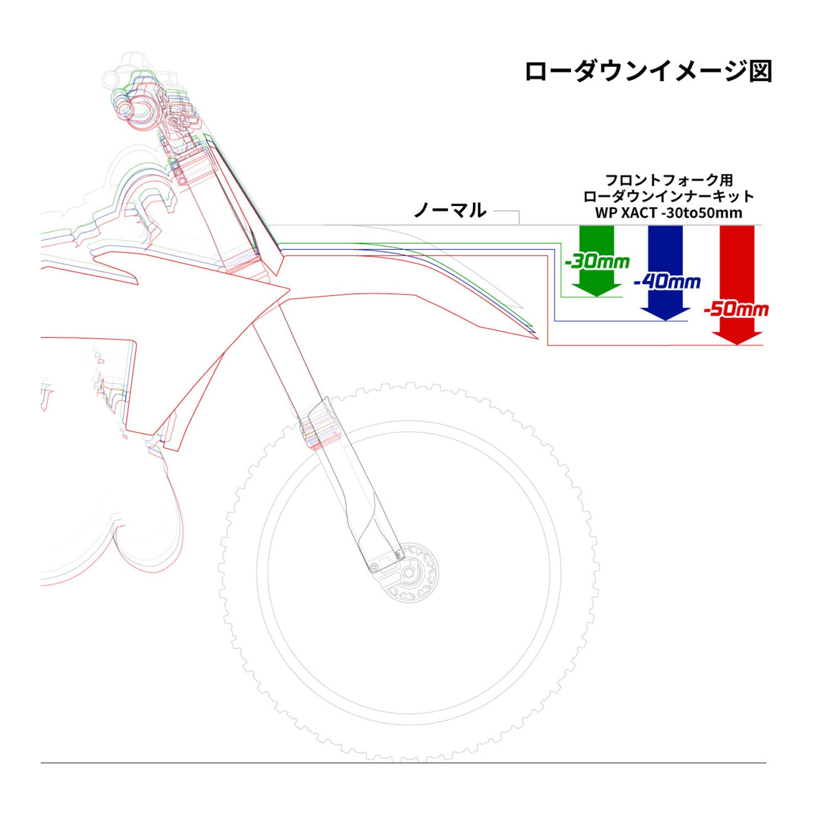 Because the suspension extension length is shortened without changing the total length at full bottom, the problem of the fender hitting the tyre, common when lowering, can be avoided. Â
