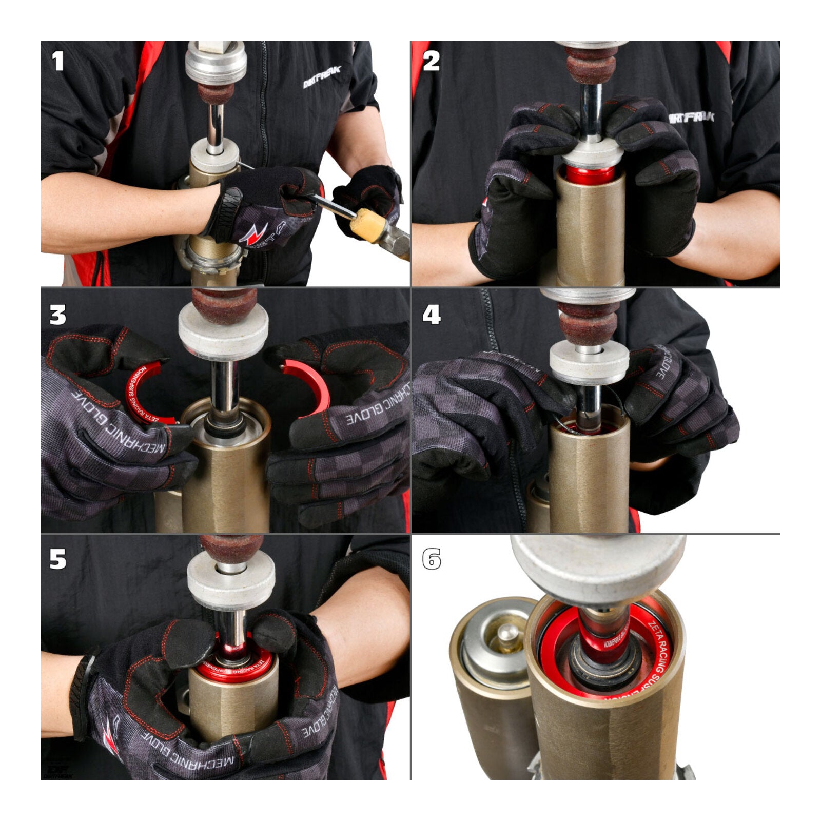 Lower your rear suspension without disassembling the shock unit. By pressing down the seal head from outside the damper, this kit installs easily and lowers your suspension by 30mm while maintaining full functionality.