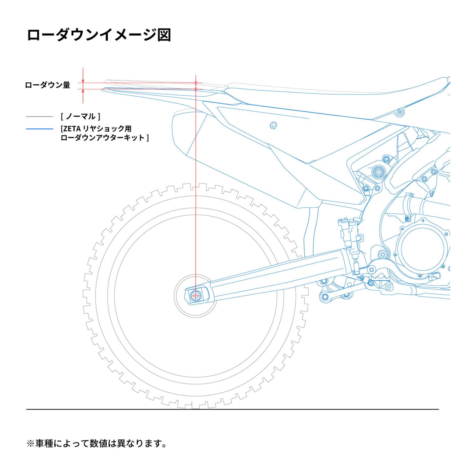 The kit reduces the fully extended length of the rear suspension without affecting the compressed length. This ensures proper clearance between the wheel and the rear fender, even when lowered.