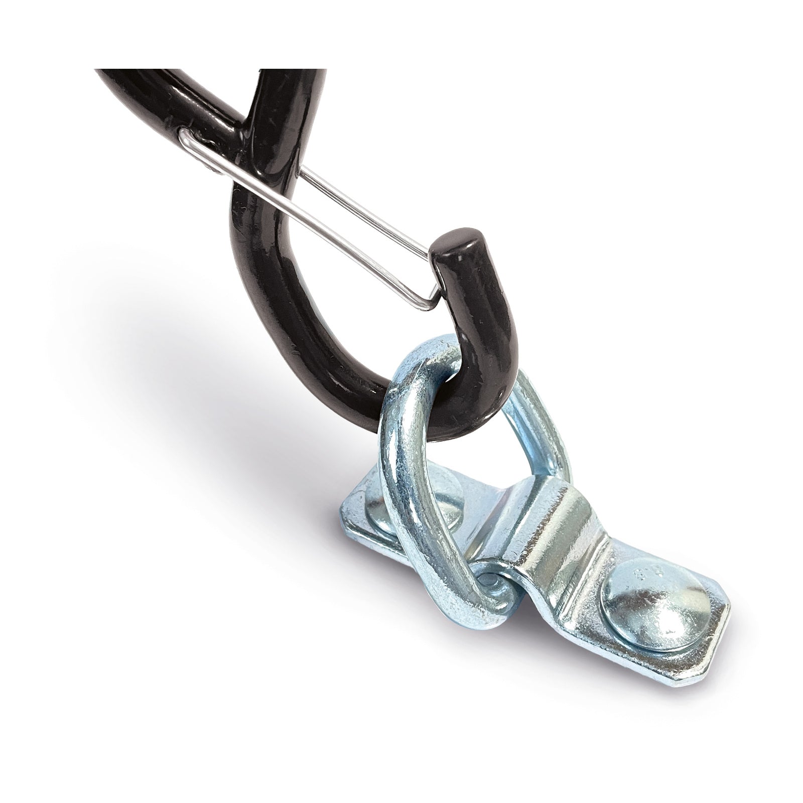 The Acebikes Heavy-Duty D-Ring Pro mounting plate may be folded flat when not in use. Two pre-drilled holes make it easy to install. Both pieces are zinc-plated to prevent damage from, for example, rust. For your flexibility, create an anchor point anywhere you want to tie down your motorcycle easily and securely in any given situation and for any vehicle.