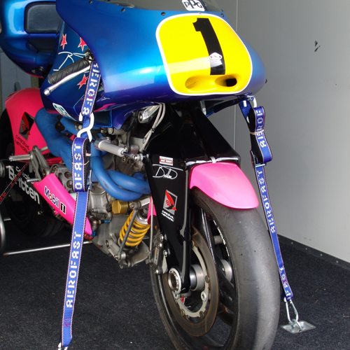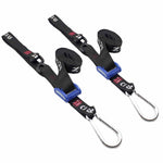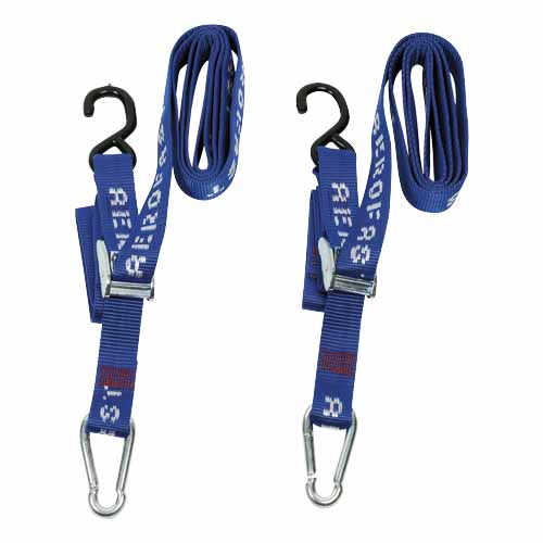 Tiedowns designed specifically for the transportation of motorcycles. Additional safety karabiner to ensure motorbike will stay secure on rough terrain. Soft-loop system to eliminate damage to bike handlebars. Heavy Duty 37mm webbing. PVC coated cambuckle to prevent damage to motorcycle’s bodywork.