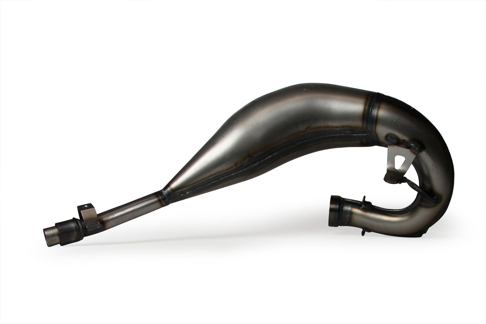 DEP 2 stroke pipes are produced from high quality CR1 grade, mild steel material. Ranging from 0.9-1.2mm, depending on the model and purpose. The 2 stroke stampings are produced through our own deep drawer process, using CNC cylinder mounts, in-house laser cut mounting brackets and fabricated with high quality TIG and MIG welding. All models are available in the bare metal factory finish and nickel finish. Our 2 stroke pipes have been designed to improve performance over the OE pipe with in-house DYNO and track testing.