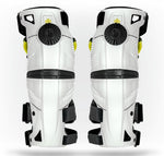 The X8 Knee Brace is the most protective, comfortable brace on the market, utilizing innovative patented technology which incorporates the CCRS (Continuous Cable Routing System) to form an unparalleled system of support and protection. The forged CNC machined dial makes fit adjustments on the fly and through pants easy. Fully lined with plush EVA foam, a comfortable, impact-absorbing surrounding is created. Includes one pair of braces and two extra sets of patellar shell pads for a precise fit.