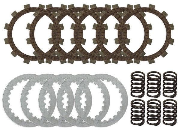 Psychic Complete Clutch Kits include Fibers Steels and Heavy Duty Springs. The steel clutch plates are made of JISG3141 carbon steel and precision flattened to prevent cable adjustment loss. The cork based plates are impregnated with an anti-swell Aluminium alloy to give smooth clutch take-off and allow modulation.