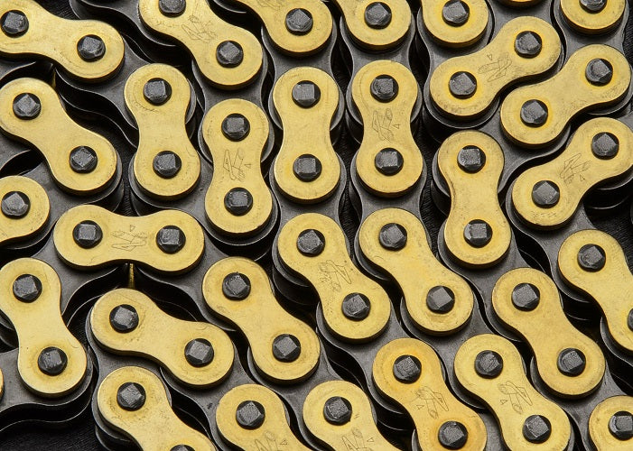 ~ Chain features high alloy steel plates and pins, solid bushings and rollers, shot peened side plates for added strength and gold side plates