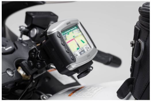 Retaining plate with universal drill-hole pattern provides secure hold for the usual GPS models and Navi Case Pro device cases or hardcases from SW-MOTECH.